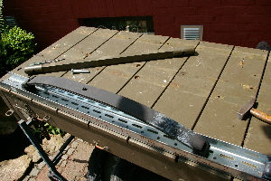 Los ging es mit einem schweizer Train-Anhänger (vor den eigentlich ein Pferd oder Muli gespannt wird), der für den Betrieb auf deutschen Strassen umgebaut wurde. Nachdem der Hänger hier per Spedition eintraf, wurde er erst mal “entkernt”.